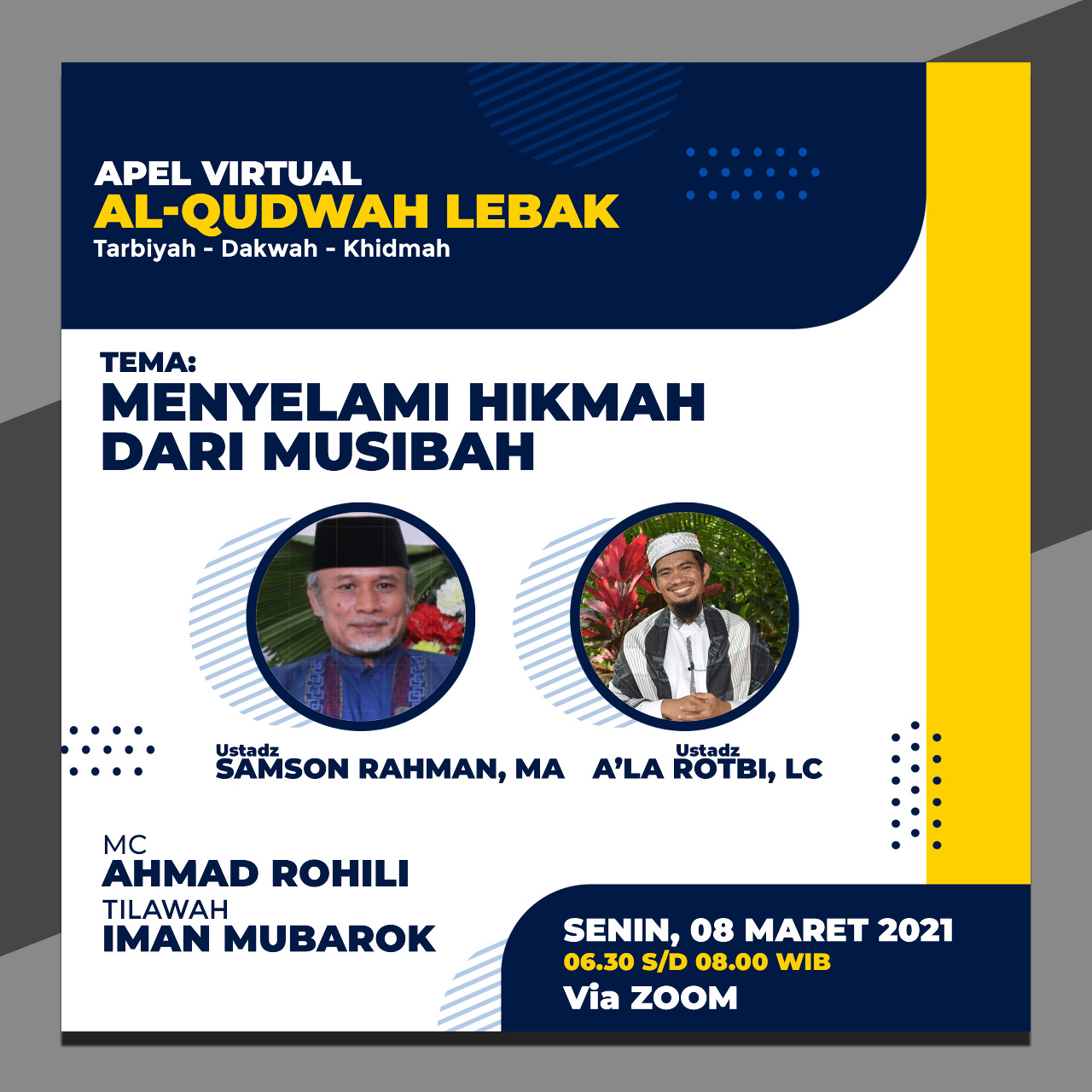 Apel virtual bulan ini diadakan pada Senin, 8 Maret 2021. Mengambil tema Menyelami Hikmah Dari Musibah. Kegiatan ini diisi oleh KH. Samson Rahman, MA dan KH. A’la Rotbi, LC. Sebanyak lebih dari 110 guru mengikuti kegiatan ini.
