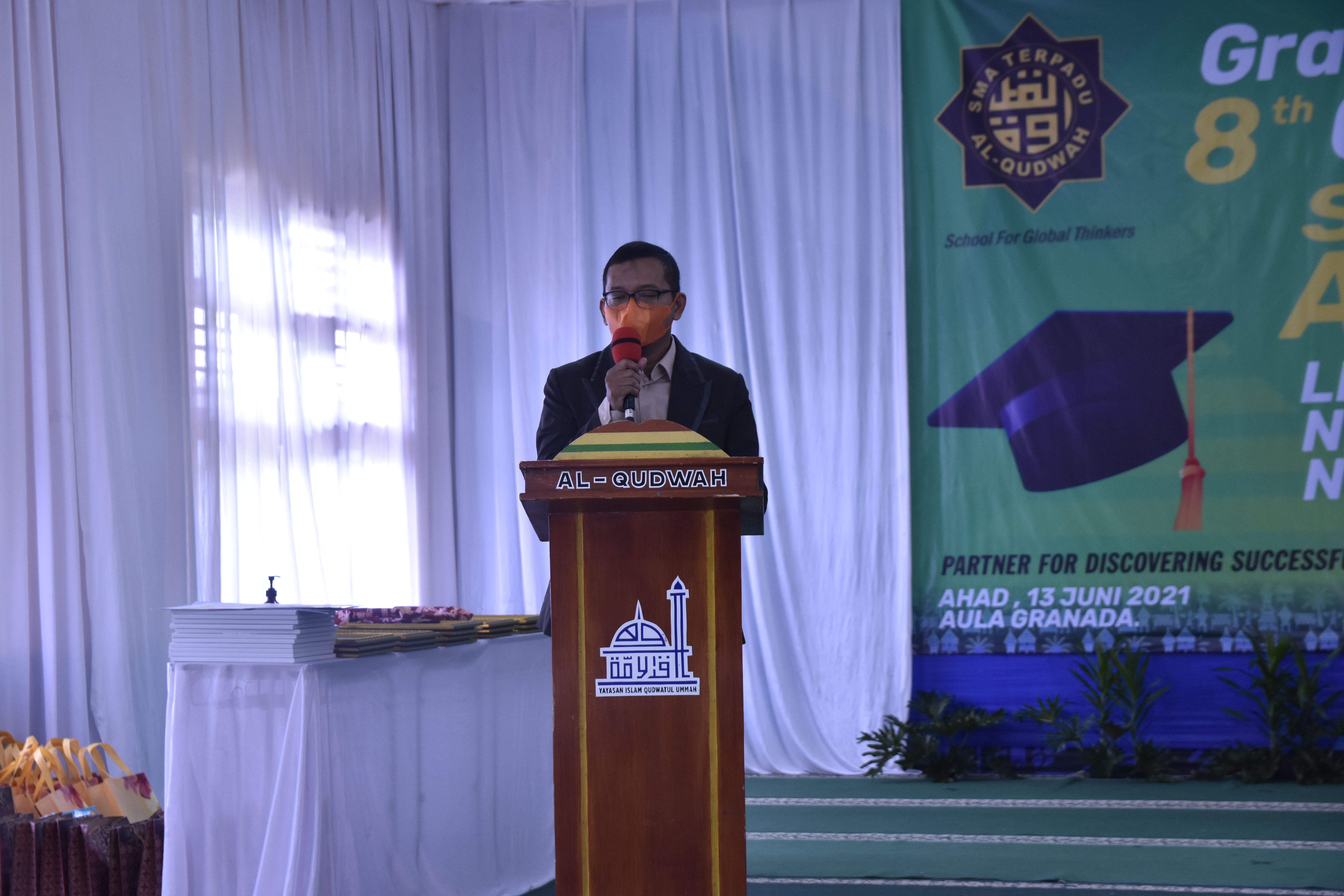 Sementara itu, kepala SMA Terpadu Al Qudwah Iwan Supriana mengingatkan bahwa tugas sekolah dan guru sudah selesai ketika mewisuda.