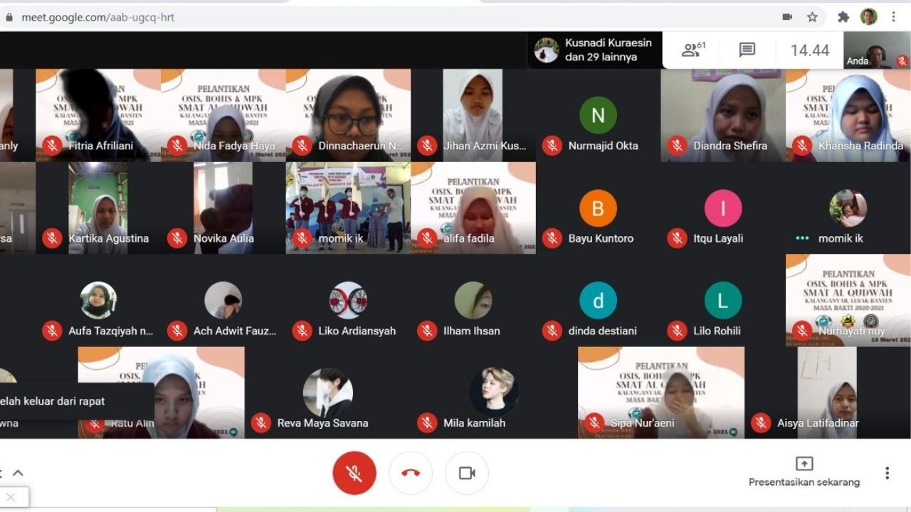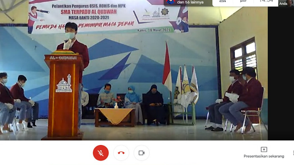 SMA terpadu Al Qudwah mengadakan pelantikan pengurus OSIS, Rohis dan MPK pada Kamis 18 Maret 2021. Pelantikan ini dilakukan dengan dua cara yaitu tatap muka atau secara langsung dan secara meeting online.
